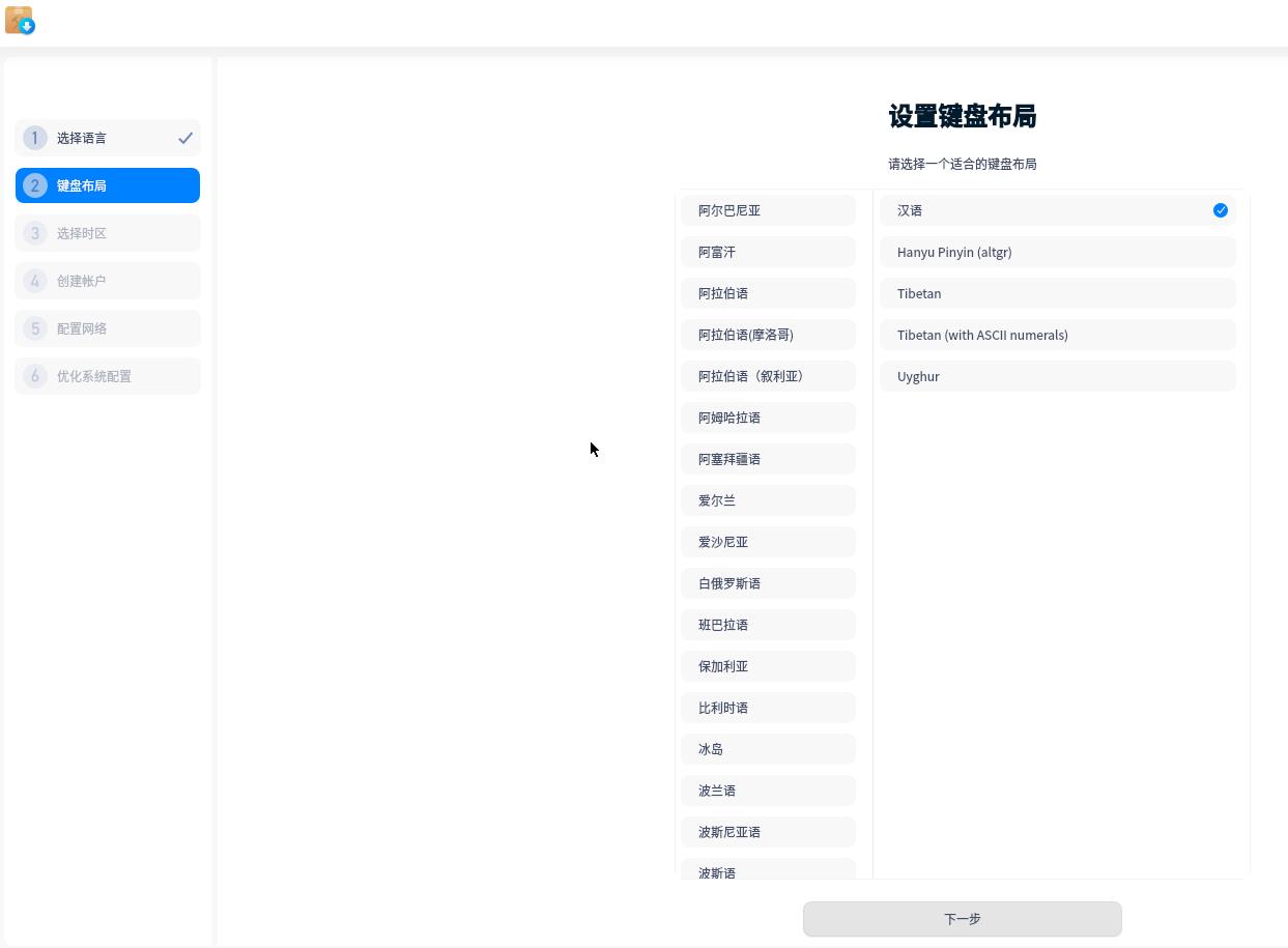? ? ? ? 8、選擇鍵盤布局及時區(qū)。